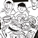 Image to illustrate an article about fasting duringRamadan and the importance of Iftar, the meal after sunset. Triple Cooked Food Magazine, Issue 3 (Summer/Autumn’17)